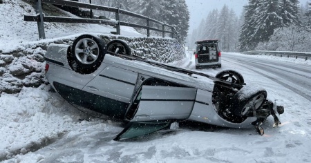 Auto sbanda e si ribalta: sulla neve con pneumatici estivi
