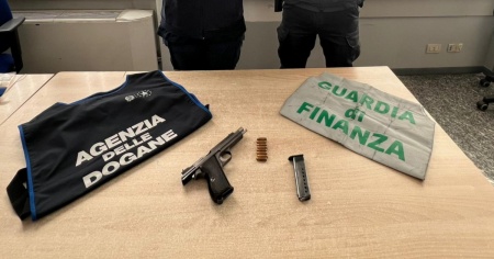 L'arma, riferisce oggi in un comunicato la Guardia di Finanza di Como, era caricata con 8 colpi e «pronta all'uso in quanto il caricatore era inserito all'interno dell'arma senza alcuna sicura». «Considerata la potenziale pericolosità della condotta posta in essere dal soggetto», l'uomo - che si stava dirigendo verso l'Italia - è stato condotto presso la Casa Circondariale di Como Bassone.