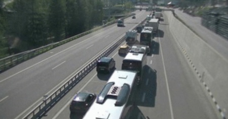 Aggiornamento delle 17:30 - La coda al portale sud non sembra dissiparsi, anzi, al momento è di circa 8 km con i primi rallentamenti percepibili già all'altezza di Quinto. I tempi d'attesa, stima il TCS sono di 1 ora e 20 minuti.