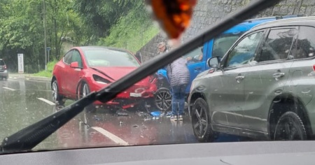 Sempre secondo quanto si evince dall'immagine, sembra che una Tesla, per cause da chiarire, sia finita nel senso opposto di marcia scontrandosi con un'auto furgonata che arrivava in quel momento.