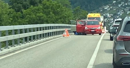 MAGADINO - Una donna portata via dall'ambulanza. Le sue condizioni di salute non sono al momento note. È il bilancio dell'incidente stradale verificatosi nella mattinata di oggi, mercoledì, sul ponte del Ticino a Magadino, nel Gambarogno.