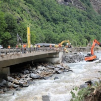 Dopo il sopralluogo sul Ponte di Buffalora, tra Soazza e Lostallo, ecco dunque le immagini girate sul posto per documentare l'entità dei danni e l'impegno degli operai impiegati nei lavori di ricostruzione.