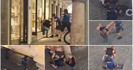 Nel video si vedono due agenti che, arma in mano, provano a fermare uno dei malviventi mentre tenta la fuga uscendo dal negozio. Nonostante la pistola puntata, l'uomo tenta lo scatto, uno dei due poliziotti lo insegue e inizia una colluttazione durante la quale viene esploso un colpo. A quel punto intervengono anche dei passanti.