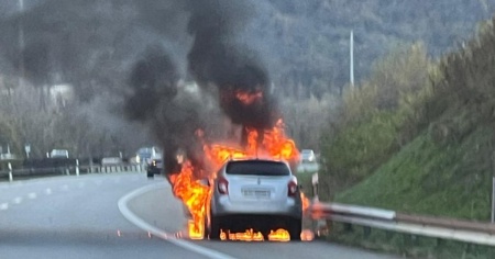 Una vettura ha preso fuoco in direzione sud. L'episodio non è passato inosservato.