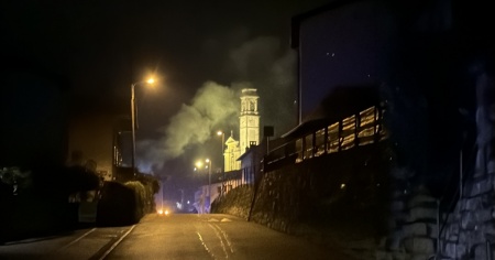 La strada Cantonale della Valle di Muggio è stata chiusa all'altezza del Ponte di Sagno per agevolare le operazioni di spegnimento e soccorso.