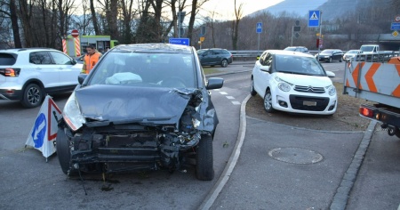 ARBEDO-CASTIONE - Due persone sono rimaste ferite, apparentemente non in modo grave, in un incidente stradale avvenuto oggi pomeriggio, 14 gennaio, attorno alle 15.30, in via San Gottardo ad Arbedo Castione, all'altezza di una rotonda.