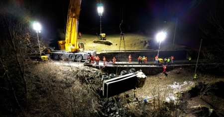 BRIONE VERZASCA - Durante la scorsa notte è avvenuto il recupero del camion che lunedì 20 gennaio, dopo essere uscito di strada è precipitato in una scarpata a Brione Verzasca. Per permettere i lavori, come anticipato ieri, la strada cantonale tra Gordola e Sonogno è stata chiusa alla circolazione dalle 20 alle 5 di mattina.