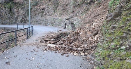 Del materiale ha invaso la carreggiata all'altezza della cappella del Calvario.