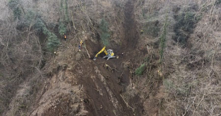 La montagna si muove (ma troppo poco) - Per il momento i vari tentativi per provocare artificialmente la frana che minaccia la strada sono stati vani. «Stiamo ancora lavorando con i macchinari», continua Simona. «Oggi abbiamo posato una rete di protezione provvisoria per riparare la strada. «Proseguiamo nel tentativo di far venire giù la frana, che però non cede».