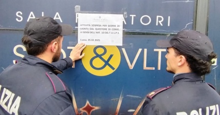 Lo comunica la questura di Como. Il locale si trova nel quartiere comasco di Ponte Chiasso, in piazza 24 maggio, a 100 metri dalla dogana di Chiasso. L'esercizio non potrà operare per 20 giorni. Gli agenti hanno apposto i sigilli all’entrata del locale notificando al gestore il provvedimento.