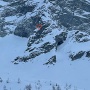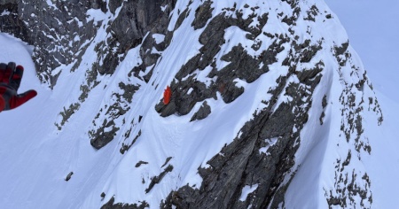 Parapendista bloccato su una parete ad alta quota