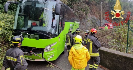 La strada sbagliata - A causa della chiusura notturna dell’A9 (di cui abbiamo dato conto qui), attorno alle 00.30 il mezzo turistico è uscito a Como Sud e ha percorso la viabilità ordinaria verso la dogana di Chiasso. A quel punto, seguendo le indicazioni errate del navigatore, al posto che proseguire verso San Fermo, l’autista ha intrapreso la strada che porta in Valfresca. Al primo tornante in discesa, il mezzo è rimasto bloccato. I turisti sono stati evacuati e mandati verso la stazione. Dopo oltre 11 ore di lavoro, la strada è stata riaperta.