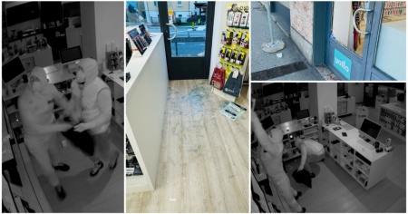 Il tutto è durato poco più di una trentina di secondi. Come mostrano le immagini, dopo il frastuono dei vetri che si infrangono e cadono al suolo, si vedono due figure in bianco entrare e dirigersi rapidamente, con un sacco nero in mano, dietro il bancone. Arraffano tutto quello che possono e lo gettano nel sacco prima che il suono dell'allarme li costringa a una rapida fuga.