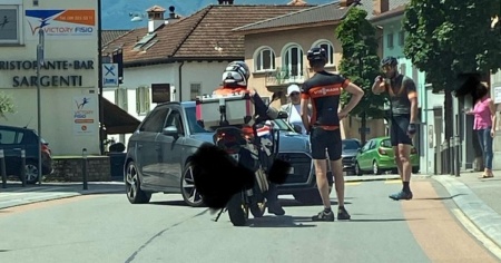Un'auto avrebbe tagliato la strada al gruppo di ciclisti