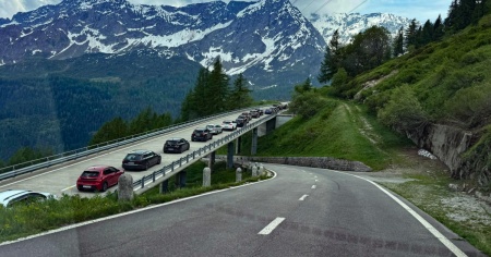 Tornando al San Gottardo, anche la strada del Passo è fortemente trafficata. Tanto che vengono segnalati tempi d'attesa di ben 48 minuti.
