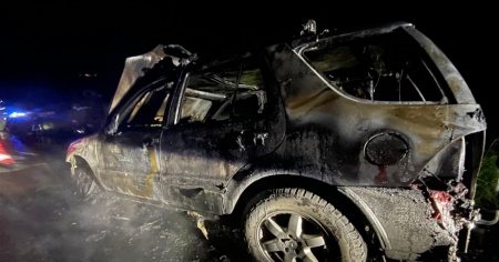 Auto in fiamme sull'A13 a Mesocco