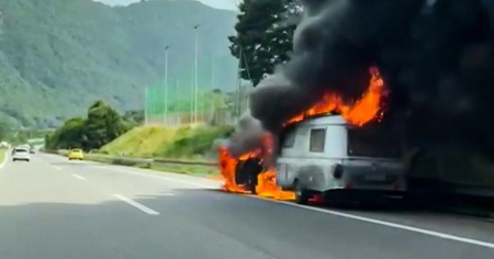 Come riportato da RescueMedia il conducente è riuscito a fermare il veicolo in corsia di emergenza e gli occupanti si sono messi in salvo prima che l’auto e il rimorchio venissero completamente avvolti dalle fiamme