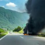 Auto con roulotte in fiamme sulla A2: salvi gli occupanti
