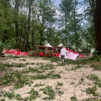 Attorno alle 16.30 il maltempo si era già abbattuto su Arbedo, con una tromba d'aria che ha provocato vari danni al bar della Spiaggetta di Arbedo.