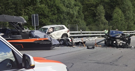 Secondo le prime informazioni - al momento non confermate dalla polizia - la causa dell'incidente sarebbe un sorpasso azzardato a un camion di uno dei veicoli coinvolti. Sul posto è atterrato un elicottero di soccorso: questo fa supporre che l'incidente abbia provocato dei feriti. Quanti e di quale entità, al momento è impossibile saperlo.