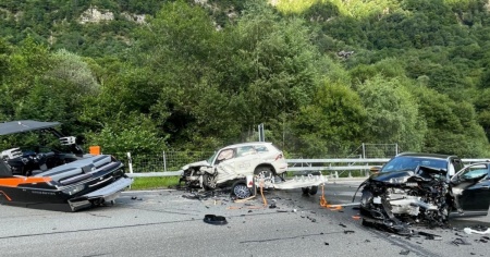 Sul luogo dell'incidente sono intervenuti il medico di servizio, collaboratori dell'Ufficio tecnico dei Grigioni e due agenti di polizia fuori servizio. Le due automobili sono state totalmente danneggiate, come pure il rimorchio con caricato un motoscafo, agganciato al veicolo che circolava in direzione nord.