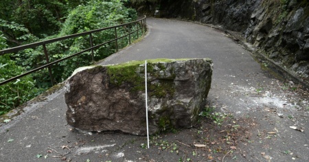 TENERO-CONTRA - Oltre un metro cubo di roccia è precipitato oggi, domenica 27 luglio, sulla strada pedonale e ciclabile, a lato della galleria, che da Tenero-Contra porta a Mergoscia.