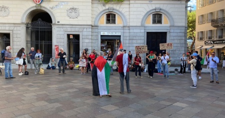 Un centinaio di persone ha risposto a Lugano alla chiamata di una giornalista palestinese. La manifestazione era organizzata dal Coordinamento per la Palestina