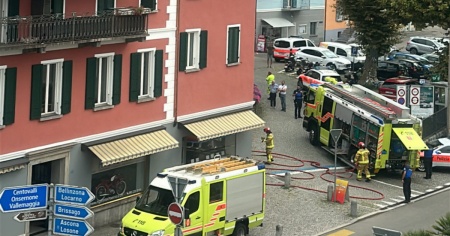 Incendio in un'abitazione della piazza di Solduno, pompieri sul posto