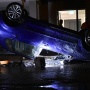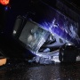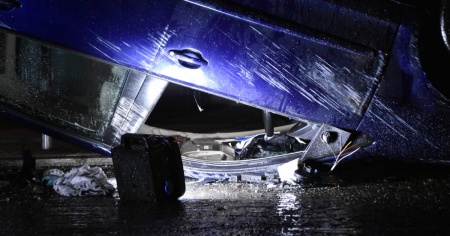 Urta lo spartitraffico e si rovescia sul tetto: ferita una donna
