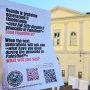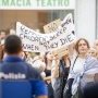 In occasione della visita di Cassis al Teatro Sociale, circa 150 persone si sono radunate per una protesta, con striscioni, pentole e mestoli