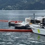 Pompieri sul posto per limitare l’inquinamento delle acque del lago