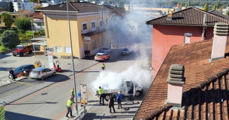 CADENAZZO - Principio d'incendio nel cassone di un furgone in via Monte Ceneri a Cadenazzo.