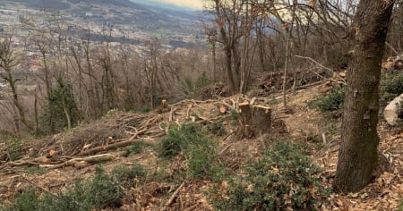 Invece, nel bosco sono già in atto grandi lavori, «con un ampio e fragoroso utilizzo di mezzi pesanti, ruspe, trattori, escavatori, elicotteri, motoseghe e si assiste al disboscamento di ampie zone, con il taglio di vegetazione e alberi ad alto fusto, indipendentemente se abbattuti dalla tempesta, soltanto inclinati o rimasti in piedi. Perfino il sottobosco con le sue piante più piccole, costituenti il bosco del futuro, è stato parzialmente distrutto», viene sottolineato. Il risultato, finora, è un desolante terreno brullo, e danneggiamenti a strade e sentieri.