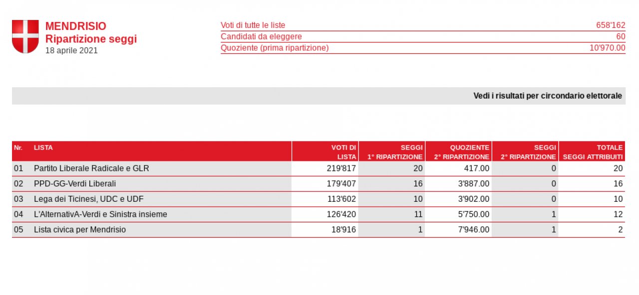 A Mendrisio il PLR conferma la propria crescita anche in Consiglio comunale passando dal 28.9% al 33.4% delle preferenze rispetto al 2016. I liberali radicali diventano quindi il partito più rappresentato anche nel Legislativo con 20 seggi (+3). Calo netto del PPD che rispetto a cinque anni fa perde più di quattro punti percentuali (dal 31.6% al 27.3%) e tre seggi (da 19 a 16). L'alleanza di Sinistra conferma invece i suoi dodici posti nel Consiglio comunale, mentre la Lega cede due dei suoi dodici seggi alla Lista Civica per Mendrisio, che entra per la prima volta nel Legislativo con due rappresentanti.
