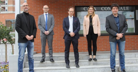Da sinistra a destra: Emiliano Delmenico, Vicesindaco (PER Melide), Marco Martino (PER Melide), Angelo Geninazzi, Sindaco (PER Melide), Sabrina Weber Venzi (PLR), Gabor Borostyan (PER Melide)