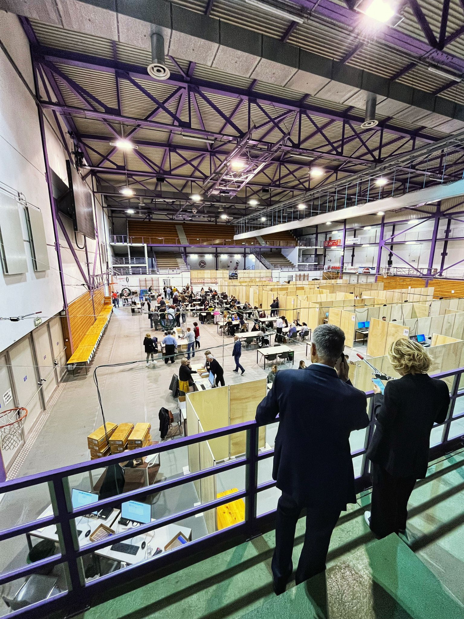Un bilancio parziale delle operazioni di spoglio, direttamente dal Palasport di Bellinzona, con il Cancelliere dello Stato Arnoldo Coduri #cantonali23 #votoTI #elezioniTI #ticino23 #iofacciolamiaparte pic.twitter.com/org7iTQtyA