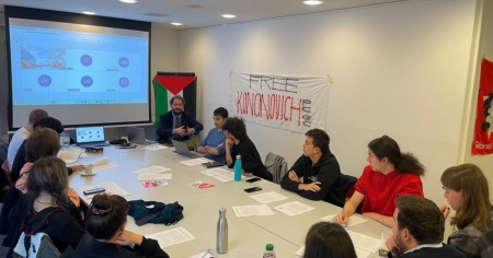 BELLINZONA - La Gioventù Comunista (GC) si è riunita sabato in assemblea presso la Casa del Popolo di Bellinzona. Sono state approvate all’unanimità, in seguito a una vivace e ben partecipata discussione, due risoluzioni ed è stato approvato un ricambio sostanziale degli organi dirigenti. In apertura all’assemblea sono stati letti alcuni dei numerosi messaggi di saluto giunti da organizzazioni di tutto il mondo, fra cui in particolare dalla Gioventù Comunista Palestinese, dai fratelli Kononovich (attualmente agli arresti domiciliari per la loro attività nel Partito Comunista Ucraino, messo al bando dal governo ucraino), dalla Lega della Gioventù Comunista Cinese, ed altri ancora.
